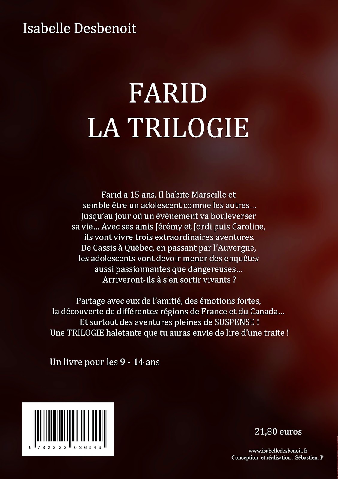 Une trilogie pour les jeunes d’Isabelle Desbenoit, Farid, pourrait permettre à votre enfant de reprendre du plaisir à lire. Farid a 15 ans, et s’apprête à vivre de merveilleuses aventures, dans l’esprit du Club des Cinq ou des Six Compagnons. De voyages en découvertes, du Sud de la France au Québec, Farid va égayer vos enfants et ados, dans des intrigues positives. Ils seront alors fiers d’avoir pu lire en entier un livre, parce qu’ils se seront identifiés à son héros attachant. N’attendez donc pas pour offrir à vos enfants la trilogie Farid ! (ou Alexandre en format DYS) Retrouvez-la dans la boutique en ligne d’Isabelle Desbenoit, ici (lien), ou bien sûr sur d’autres sites marchands. Vous pouvez aussi vous rendre dans votre librairie de quartier et la leur commander directement !